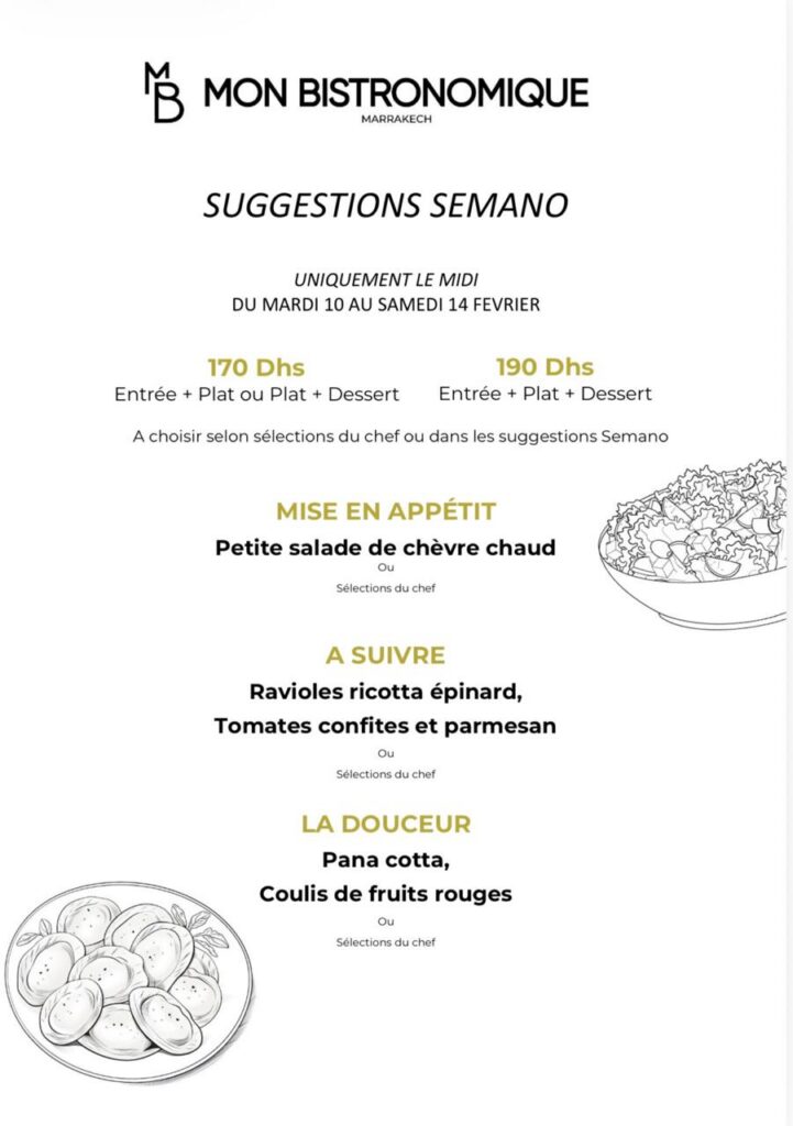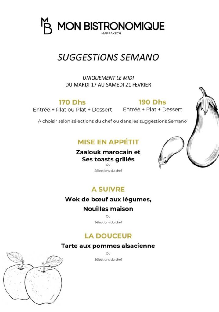 À choisir parmis les suggestions Semano ou selon les sélections du chef